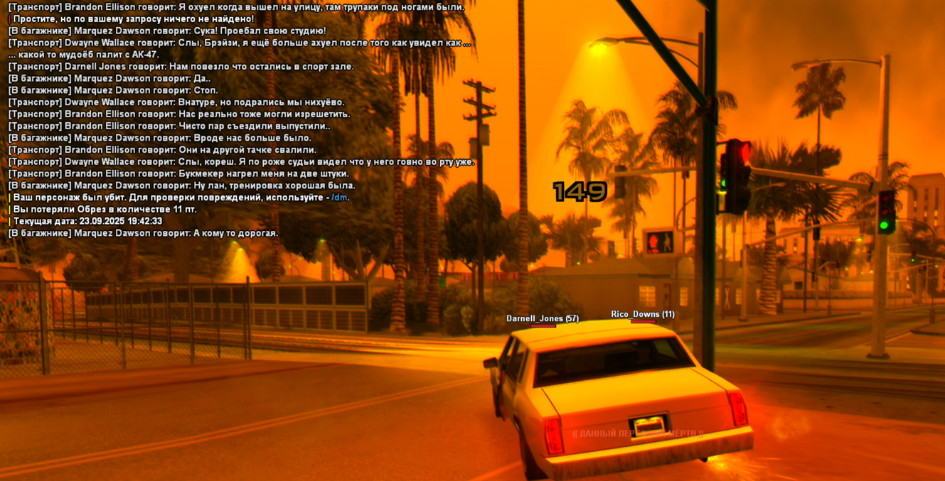 По пути к отступлению к машинам я встретил того самого мёртвого уже букмекера Jake Trantow, забрал у него свои бабки и мы убежали в машины. По дороге мы наблюдали кучу трупов на улице и в машинах.