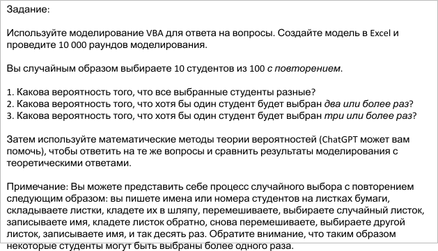 – Выбираем 10 студентов с возвращением (с повторением).