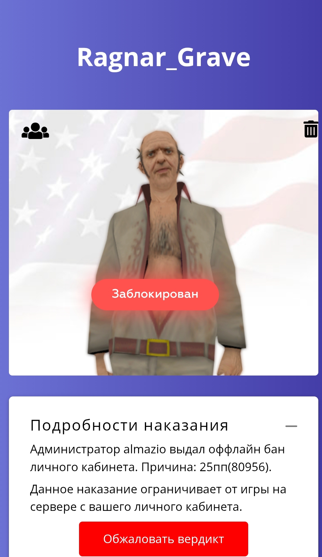 Скрин наказания