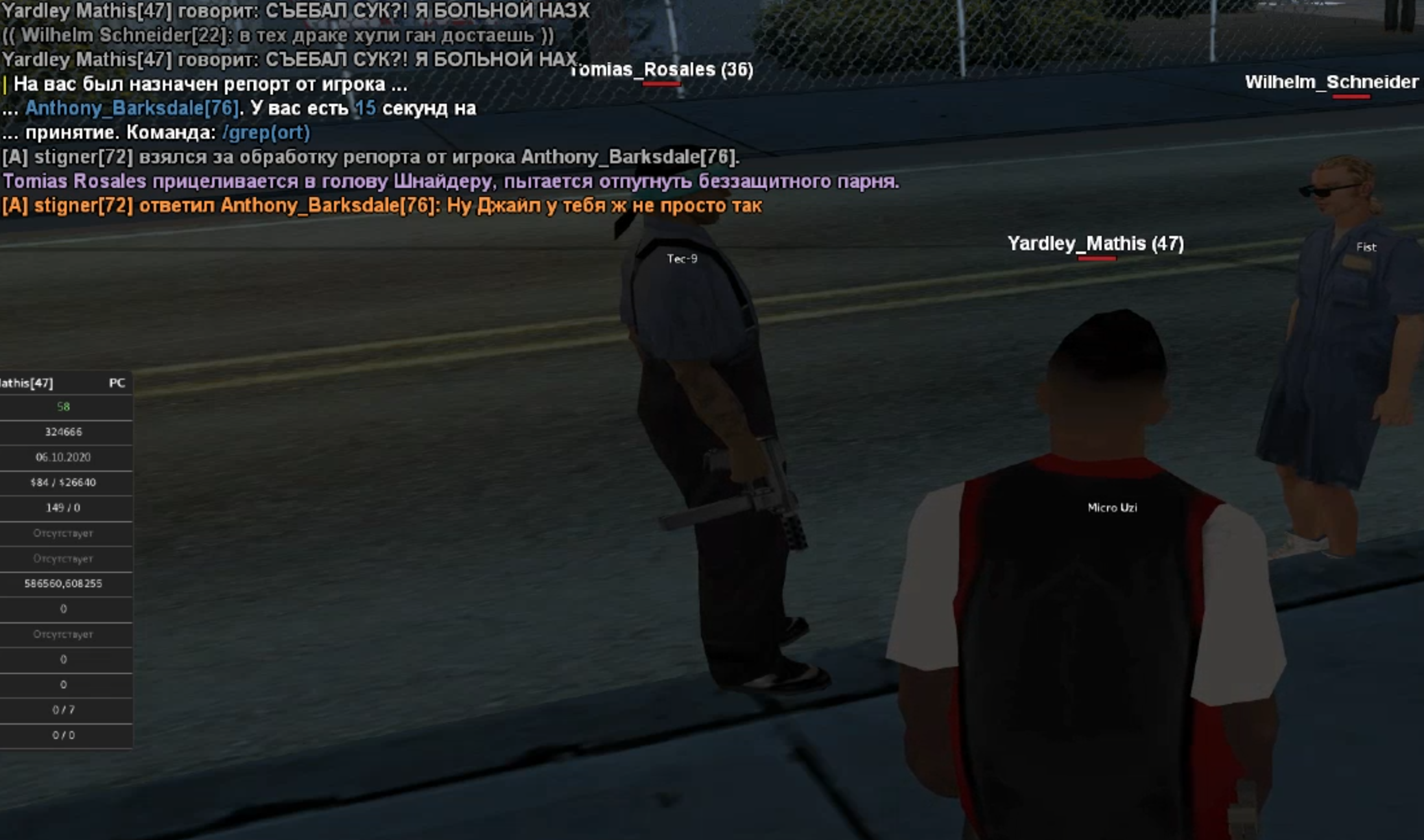 Администратор выдал мне пред за пп2.2, хотя ничего не сделал, когда в тех драке 2х1 достали ганы. Так же за отыгровку, как долбаеб мне палил в ногу без какого-либо предпосыла. На тот моменты они пытались грабить перса, а он готов был отдать деньги, они нахуй начали палить мне в ногу.