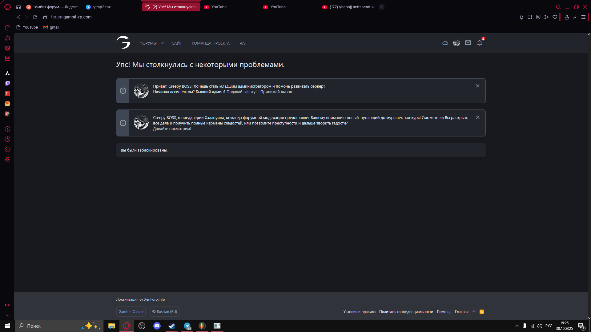 Суть жалобы: Добрый вечер администрации проекта. Хотел бы попросить разблокировать форумник Creepy BOSS для написания амнистии.