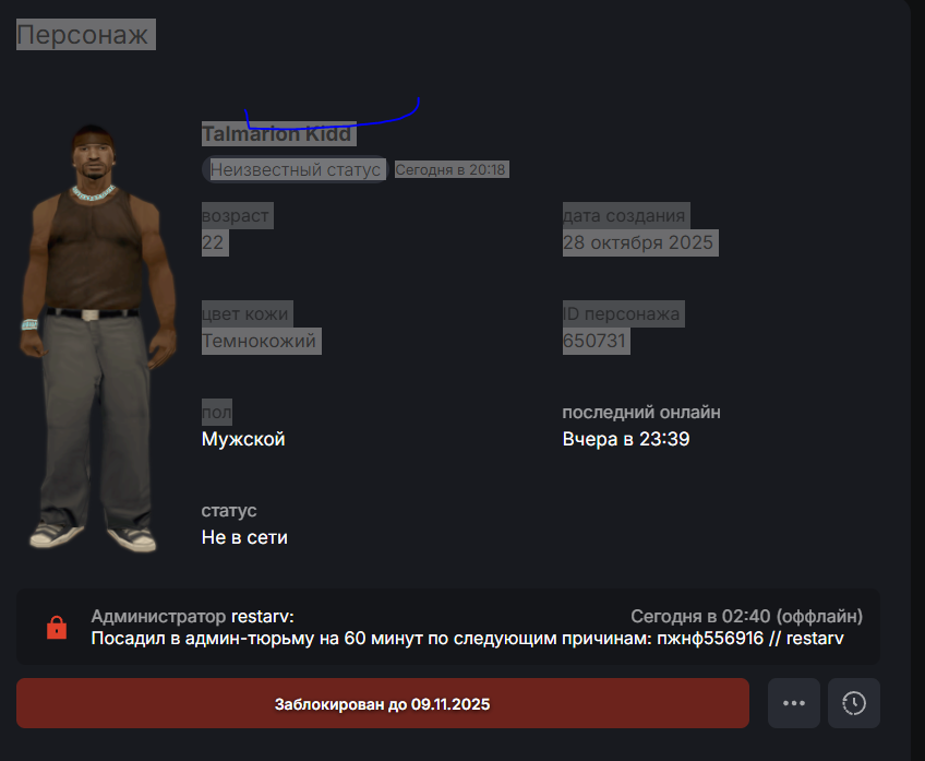 Вы получили блокировку из-за жалобы на убийство игрока (то был малоимущий фокусник) без веских причин. Жалоба была подана в скрытом разделе форума по ссылке: https://forum.gambit-rp.com/threads/556897/