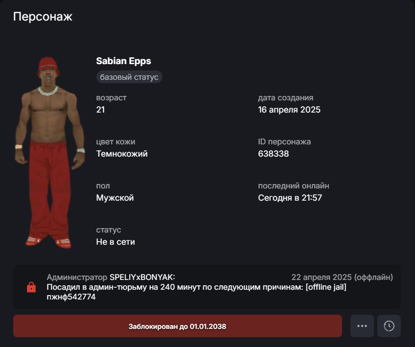 Я требую пересмотра моего дела и проверки действий администратора Restarv. Если никаких доказательств моего нарушения не существует, бан должен быть снят, а факт необоснованных действий — зафиксирован. Я всегда играл честно и по правилам, и не намерен молчать, когда администратор, не утруждая себя проверкой фактов, принимает решение, влияющее на репутацию игрока и атмосферу всего сервера.