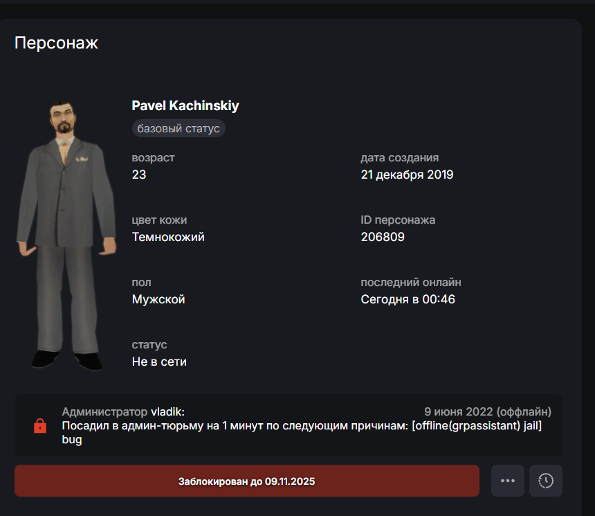 Дата и время наказания/нарушения: 2 Ноя 2025