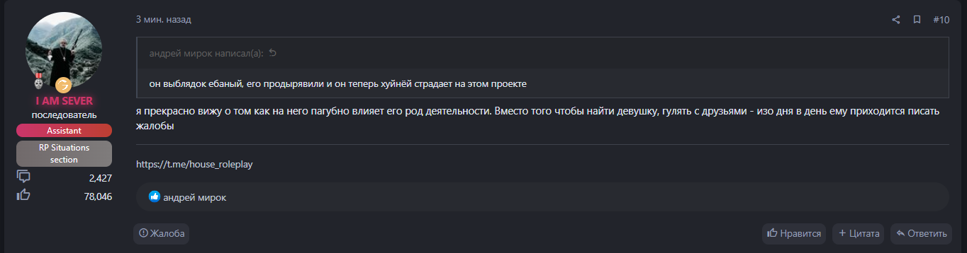 Ссылка на доказательства наказания/нарушения: https://forum.gambit-rp.com/threads/557395/post-7102323