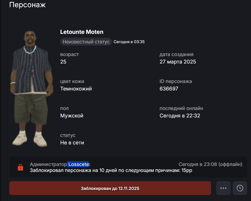 Дата и время наказания/нарушения: 2 Ноя 2025