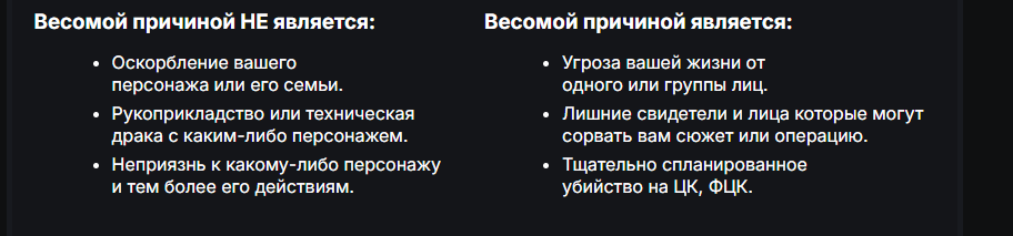 для этого не требуется нестандартная роль. если ты думаешь, что причиной для убийства является всего три пункта - то ты поспешил с админкой.У тебя нету нестандартной роли, чтобы убивать его за угон. И вообщем угон не считается весомой причиной. Посмотреть вложение 4416203