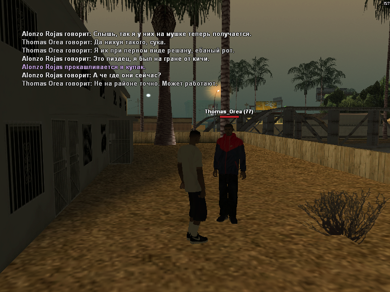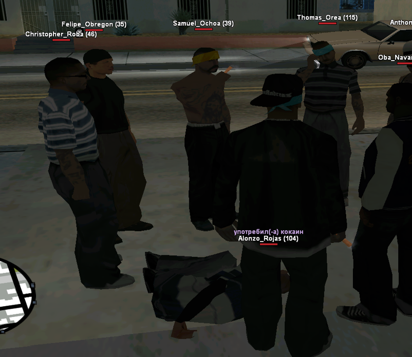 В этот же вечер мы возвращаемся с напарником к игре с этими хлопцами, да начинаем уже нормально бэнгать с братвой, где она принимает нас уже за своих и светит наркотиками, оружием, дерьмом короче. На скриншотах видно, что данные бэнгеры даже не подозревают, что мы детективы и чувствуют нас своими братками.