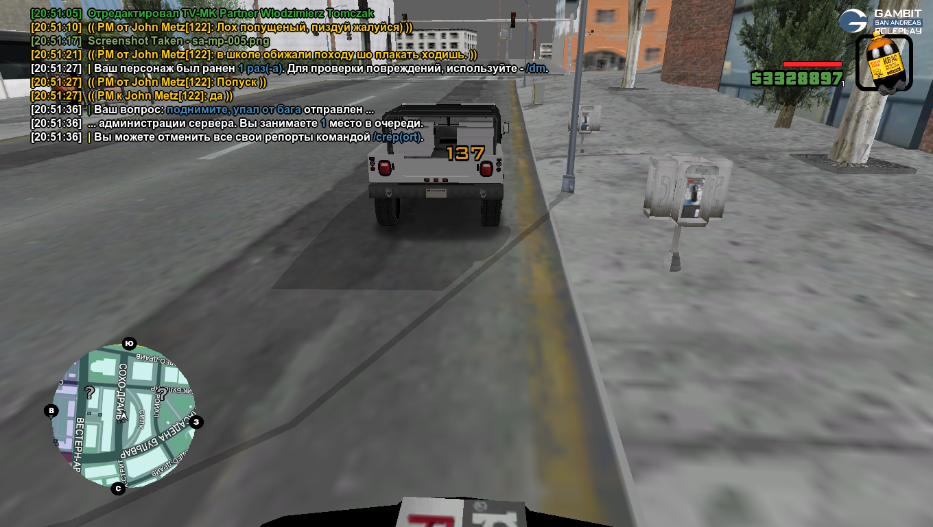После чего выходим на улицу, тот продолжает мне говорить, что у меня чит на казино, что я постоянно выкидываю 10-12 и кидает хотринг за 1-10кк на дурака и говорит: Давай забирай, пойдём сыграем ещё на миллион. Скрины приложу ниже.