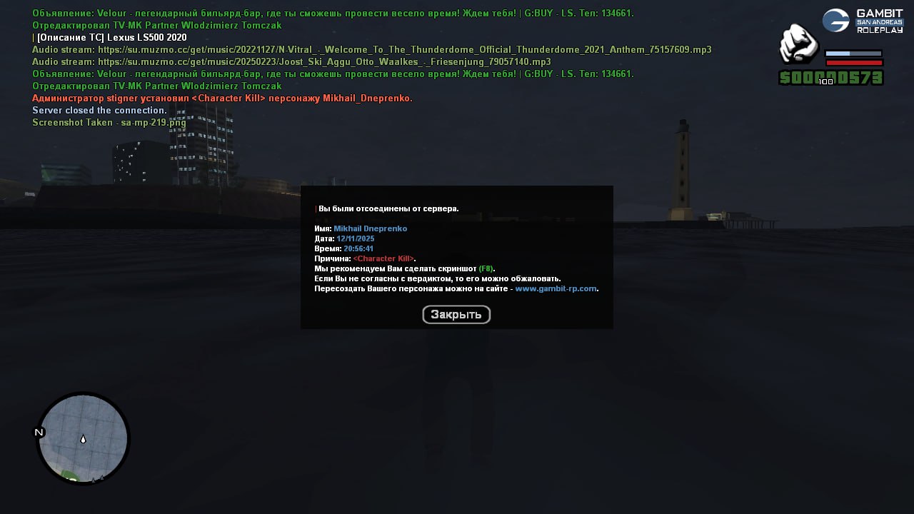 Суть жалобы: Сразу к сути, была погоня за мной, я обьехал шипы но мне почему то шины все равно прокололись но суть не в этом, после того как я попался на шипы я вышел из машины в попытках убежать, ну и спрыгнул в воду, и прилетает цк, а разве человек в ирл когда в воду прыгает сразу умирает? Я знал что цк дают если упасть в воду но думал что только на машине, вообщем просто хочу узнать никаких предъяв нет, и если можно снять цк я бы поменял ник