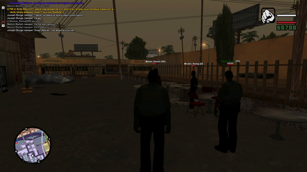 Суть жалобы: катали с кентом патруль и в округе постоянно начал мельтешить этот черный авто, пару раз с ним столкнулись - ни отката, ни отыгрывок, просто уезжает и все даже этому не придавали значения, а уже просто включил откат ~ в итоге влетел в обычного игрока и в нас вдобавок ничего не отыграв и не откатив. также после того как мы его не видели в своем поле зрения продолжительное время в пм моему соигроку приходит сообщение с оскорблением его родителей.