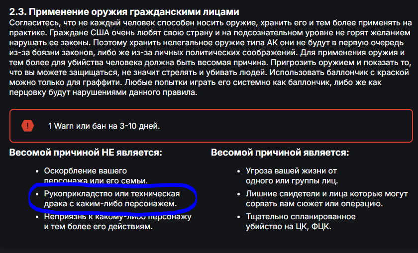 а так, решение за админом. Скринов их ПГ - у меня не имеется, может сейчас спрошу у других присутствующих. В любом случае, если найду, приложу. Скриншот правила 2.3 ниже. Насколько я помню, по правилам так же нужно подождать секунд 10-15 перед тем как начать стрелять по человеку после его спавна или респавна, ибо пострадавший ничего предпринять не может.