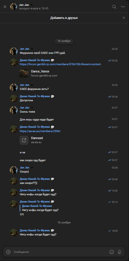 Суть жалобы: Чел посадил меня на довольно длинный срок в КПЗ до суда, отписал мне в ВК а потом начал игнорить буд-то обидевшись на что либо.. Просьба освободить меня из КПЗ. К слову, суда я так и не увидел