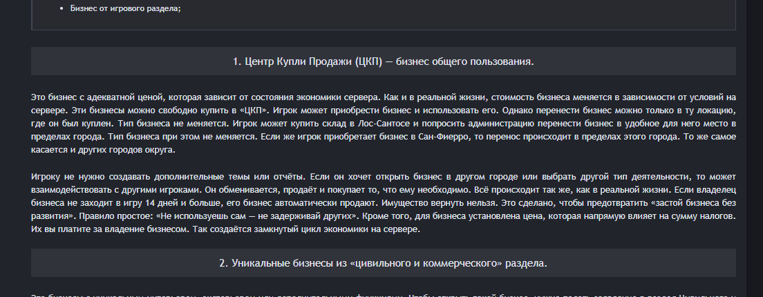 Вы правы, неактивный бизнес это плохо, если игрок его купил и просто держит у себя, зная что клуб это площадка которую стоит развивать, даже если бизнес не на выдачу, то это нехорошо. Запрос был от меня, и не потому что это был блат, а потому что я учитывал прошлое этого бизнеса, как я выше описал, кому он был продан, кем и почему. Поскольку я уже не хед цивил раздела, то ответ по возврату или нет даст @sutenerotboga . Я же от себя скажу, что я за чтобы вам вернули бизнес.