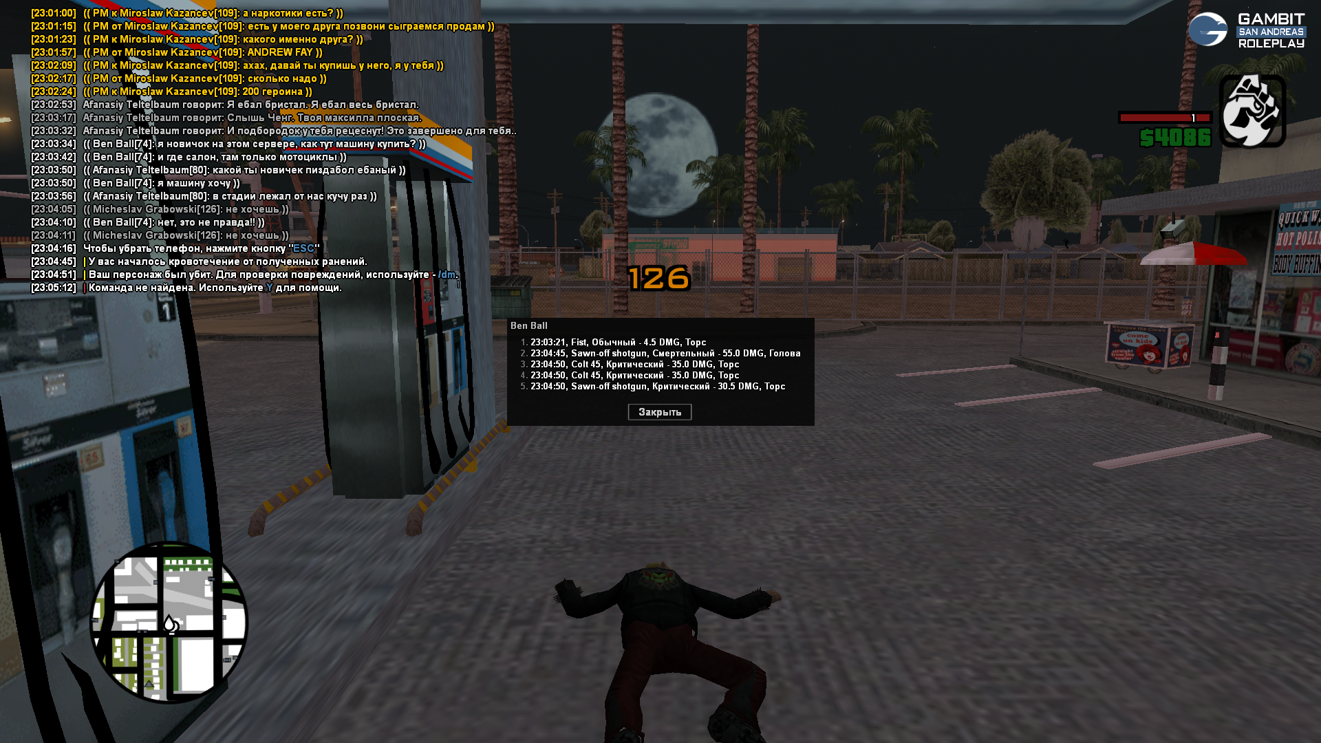 Суть жалобы: убили без отыгровок, сел в машину, ничего не взял - мертв. игры вокруг меня никакой не было, была лишь толпа людей с не понятными мне никами