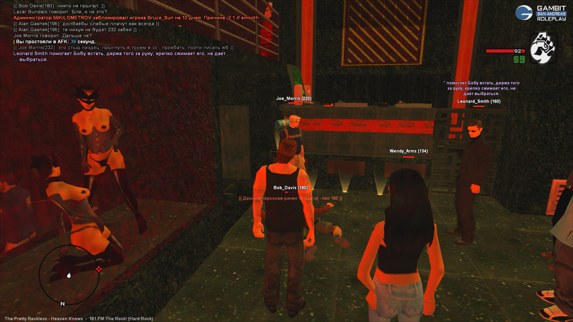 1) ПГ. Игрок, пользуясь тем, что находится в ЗЗ (клуб), провоцировал нас на драку, но никто на него не нападал. После этого он напал на John Odinkerk, когда он был в окружении трёх друзей, включая меня. Он не мог не знать этого, ибо до этого мы все давали это понять. Игрок просто воспользовался тем, что исходя из правил проекта, мы не могли толпой забить его в ЗЗ. ((ЭТО В САМОМ НАЧАЛЕ ВИДЕО))