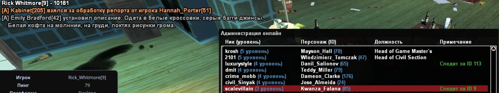Для так сказать аффирмации души следишь за игроком который уже 10 тысяч секунд в афк -> ничто иное как «работа» администратора если не ошибаюсь в час пик. Ну или по простому - фарм часов