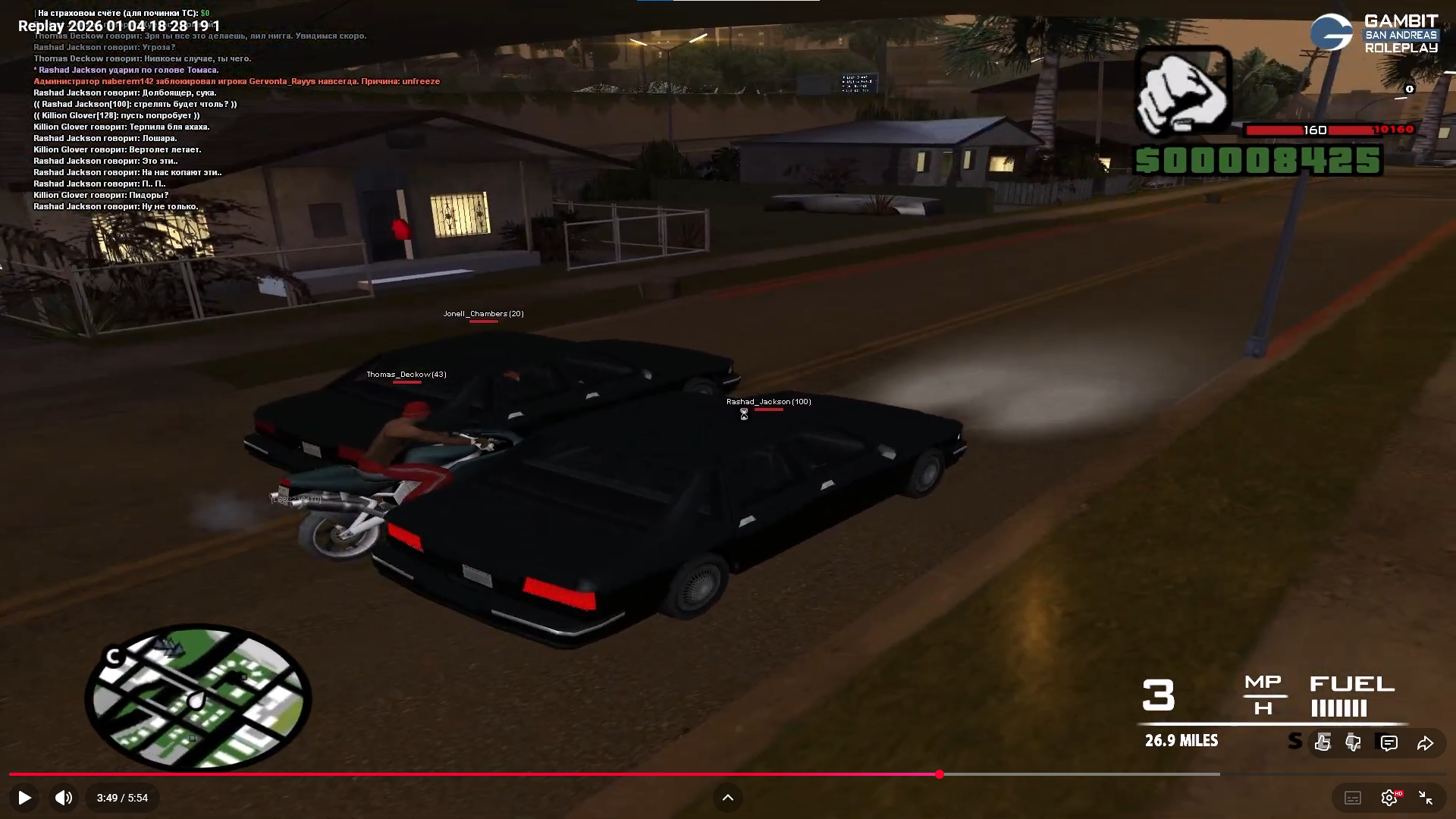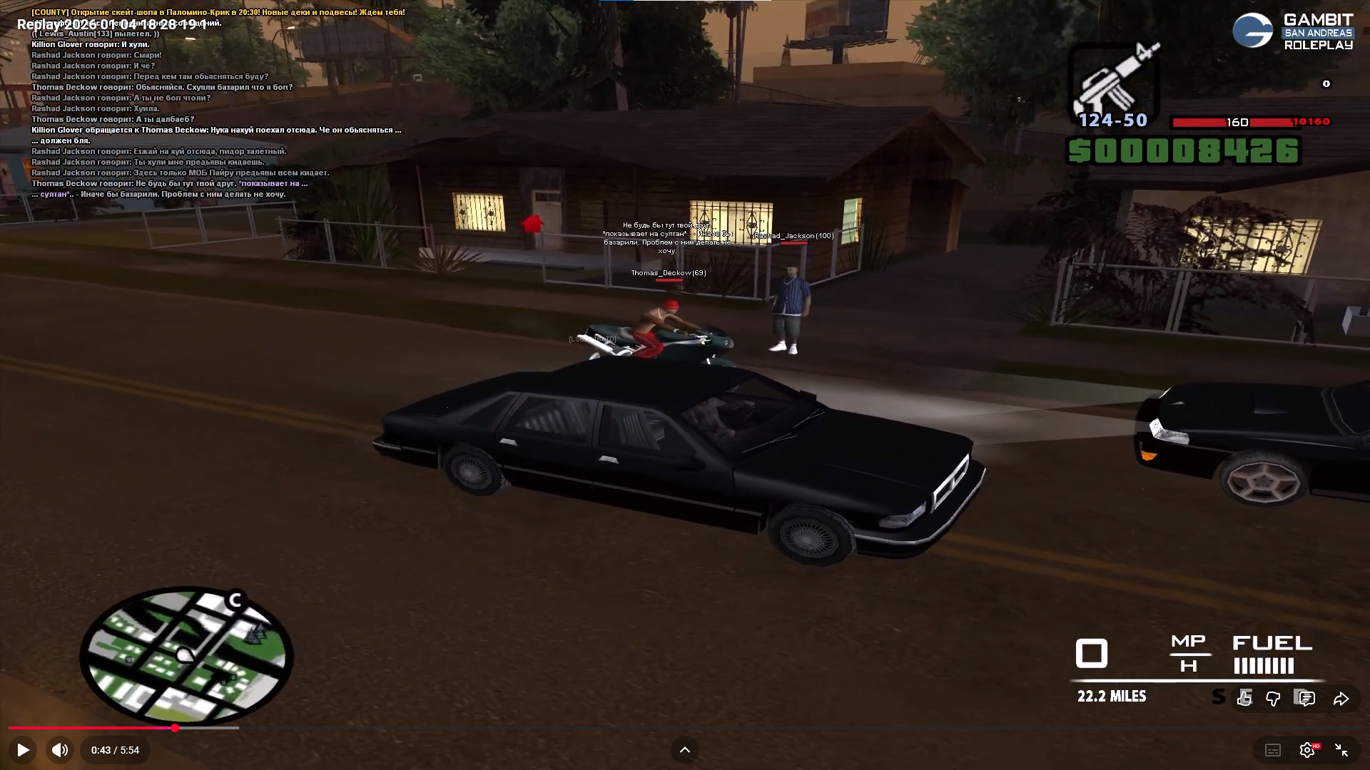 Суть жалобы: Убийство с вымышленной причиной, я никакой угрозы им не предоставлял. Это делали только игроки данной банды, была ситуация еще косвенно с незнакомым мне человеком, вот по которому данный нарушитель и начал стрельбу, но по отыгровке было что он открыл только в него огонь, а для какой цели он начал стрелять в меня? Я начал уезжать в этот момент с района, когда он ещё даже не вышел из машины.