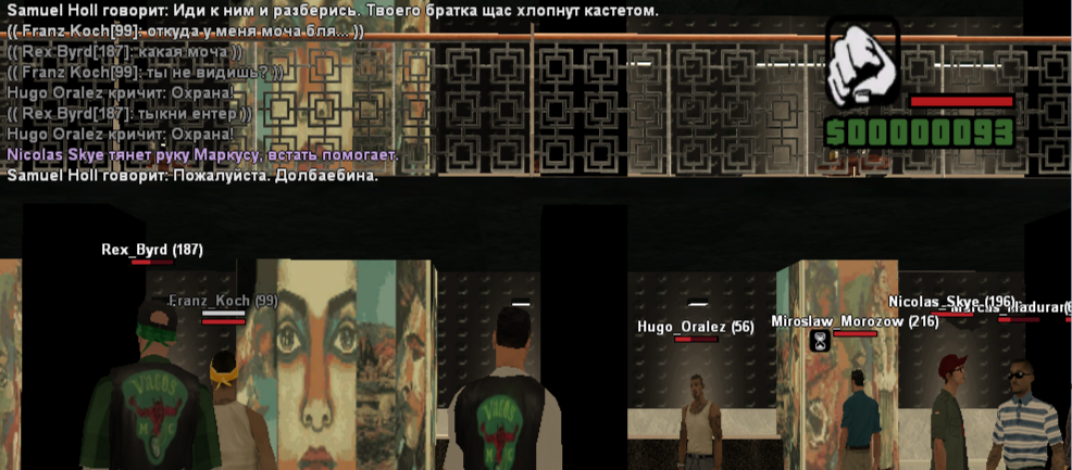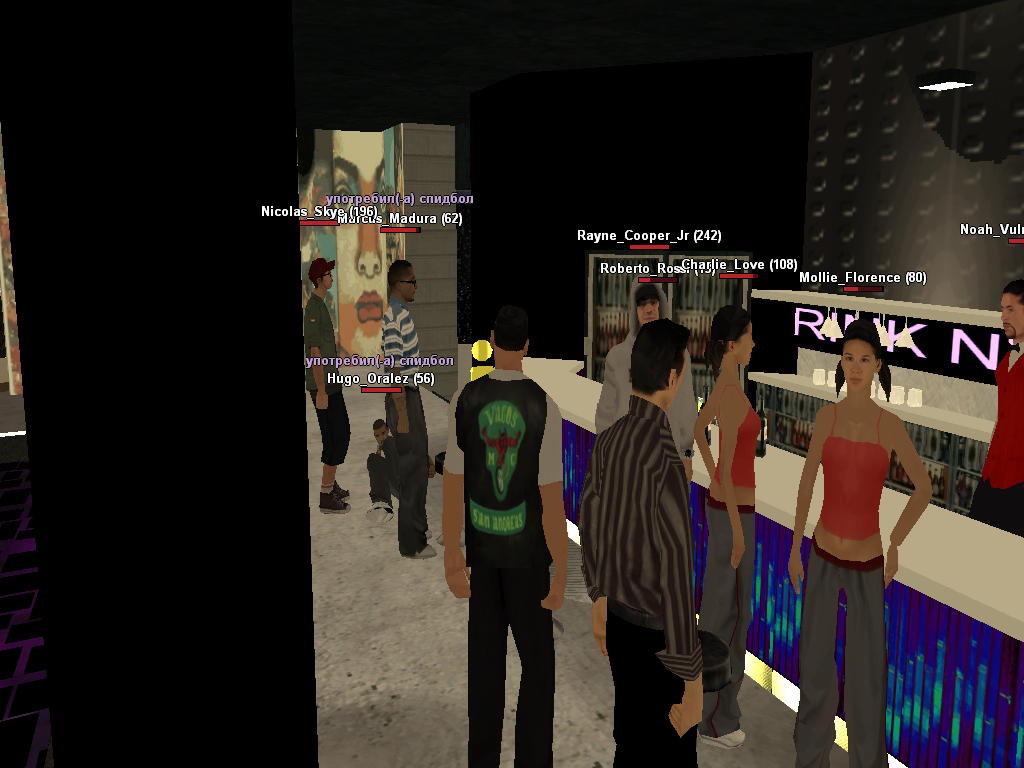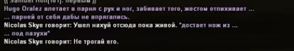 Суть жалобы: Ситуация началась с того, когда мы просто сидели и играли в клубе, к нам завалилась группа и из 3 типов, начали нести полный бред, якобы под состоянием алкоголя, пользуясь плахоном нестандартной роли у своего друга. После драки в клубе табль, у Родео, типы потерпели поражение в драке 2/2 - именно драка началась таким, когда один из пареньков увидел свой уровень красной жизни вверху в правом углу, он отбежал, - мы тоже, как раз подбежала охрана. Мы, на этот момент и не хилились, у меня было 40 хп, у моего соигрока в диапазоне 60+(один из них был с кастетом). Парни отбегают к барной стойке, без отыгровок что-то делают, смотрю - с низкого ХП они бафнулись до последнего, а их дружок с нестандартной ролью просто им раздал нарко, и они убежали на улицу. Думал на этом ситуации конец и больше нечего засиживаться в клубе, тут они после того как бафнулись хпшкой с нарко, встречают на нас улице в 3, один с кастетом, нестандарт с ножом. Когда начинается драка 2/2, он стоит в стороне, тут прилетает ножевое мне, оказывая якобы планку что он нестандартная роль. Я убегаю в клуб, - после выхожу, Рэкс лежит во 2 стадии. Родео как мне помниться зеленая зона, Но, до определенного времени.
