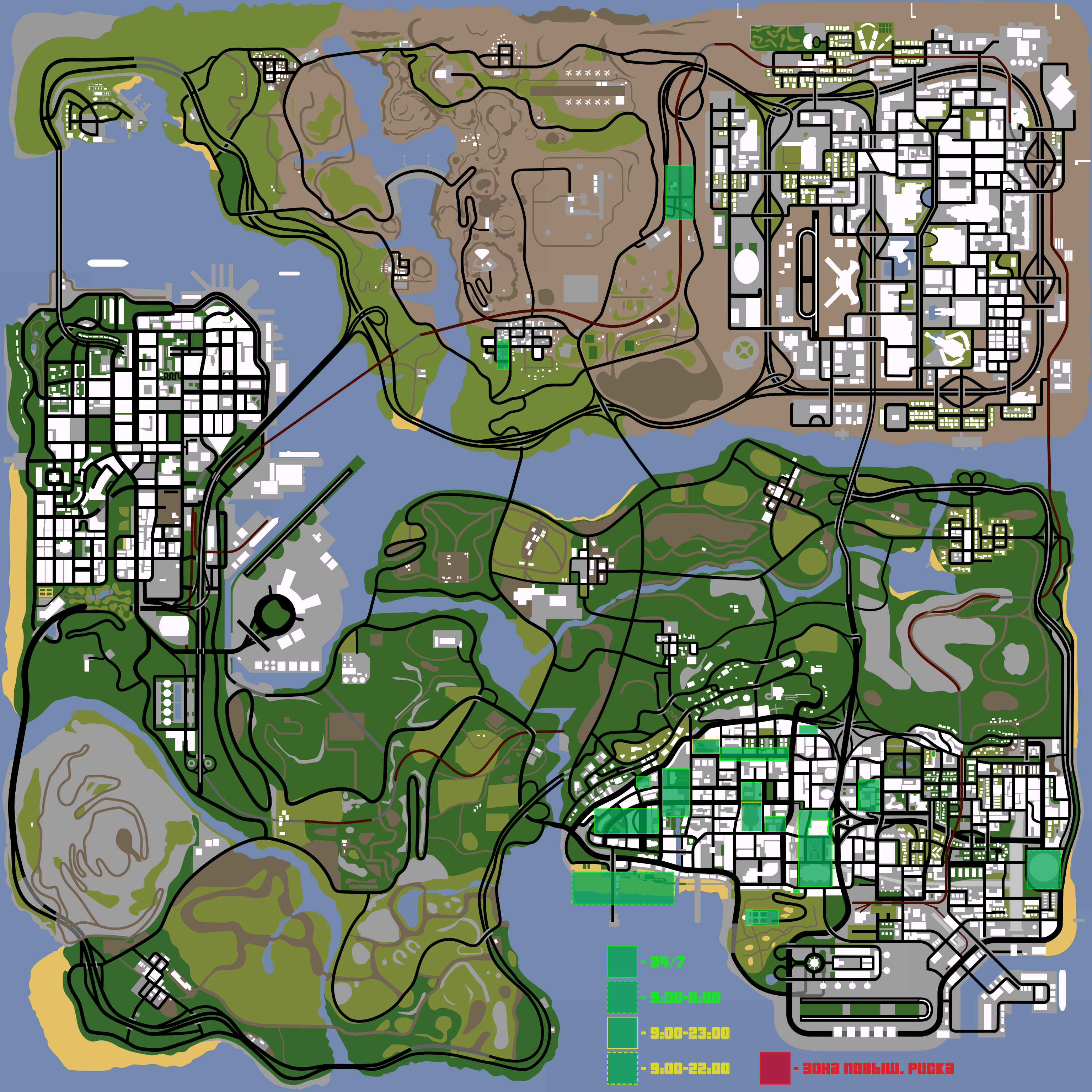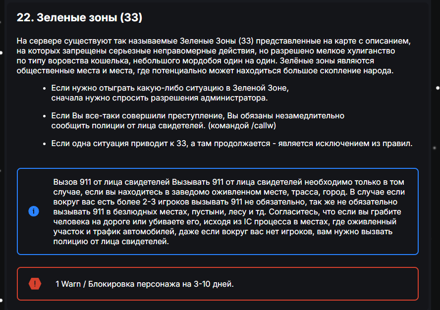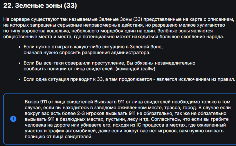 Она прописана - где? То-есть судя по этой карте, спавн и многие зоны Не являются зелеными, по твоей логике можно спокойно стрелять на спавне, драться, нарушая 22 правило?