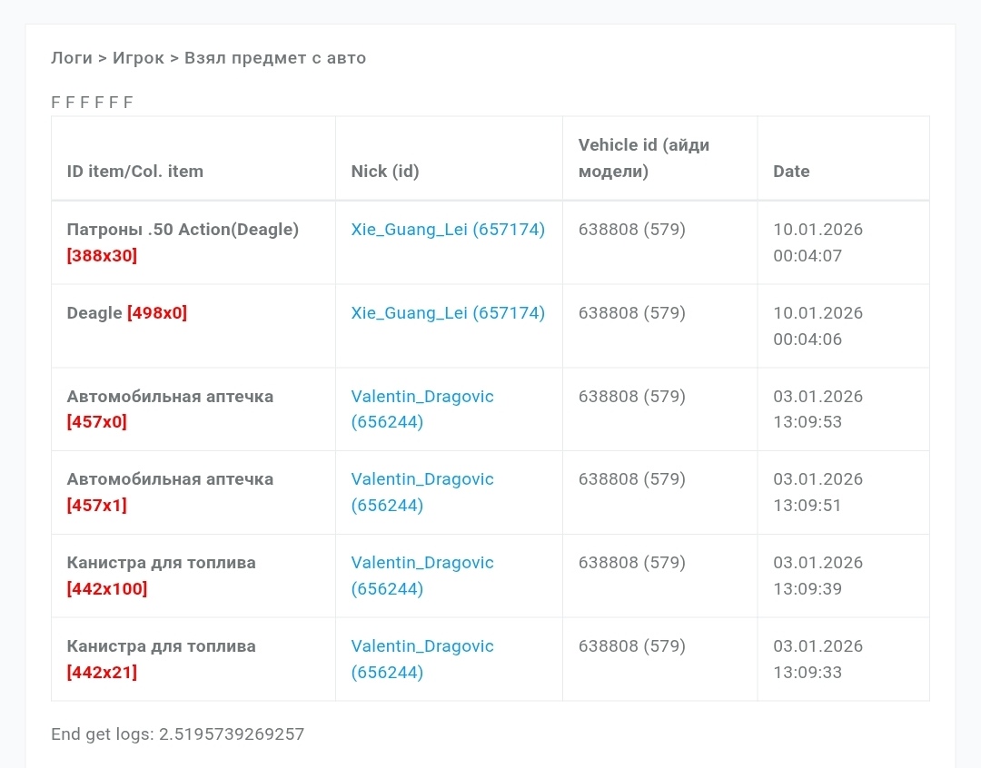 Привет, я так понимаю, у тебя украли пистолет с бардачка? Укажи пожалуйста айди машины в /mycars.