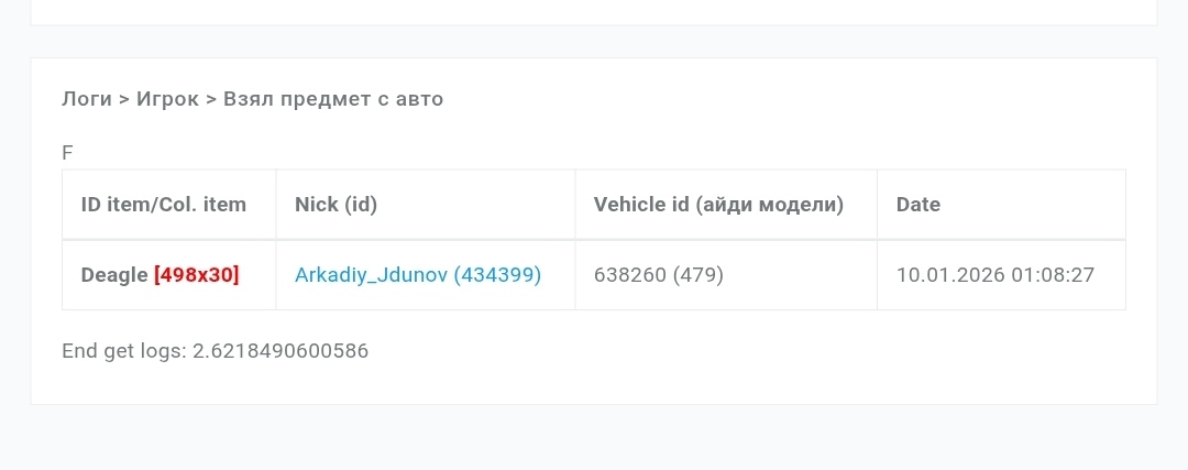 Суть жалобы: неизвестные гангстеры спиздили у меня дигл (лиц) из бардачка. 638260 - айди машины в /mycars