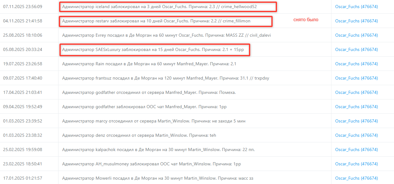 Суммируем. Откровенное вредительство, ашотство, фангейминг, игра на провокацию, самый натуральный садизм. Вы нездоровые чтоли, парни? С учетом постоянных ваших нарушений, факт рецидивизма присутствует. Я не думаю, что сервер нуждается в игроках, которые своими действиями заставляют уйти с сервера других игроков. Из-за таких как вы, уровень ролевого режима на сервере и падает с каждым днем.