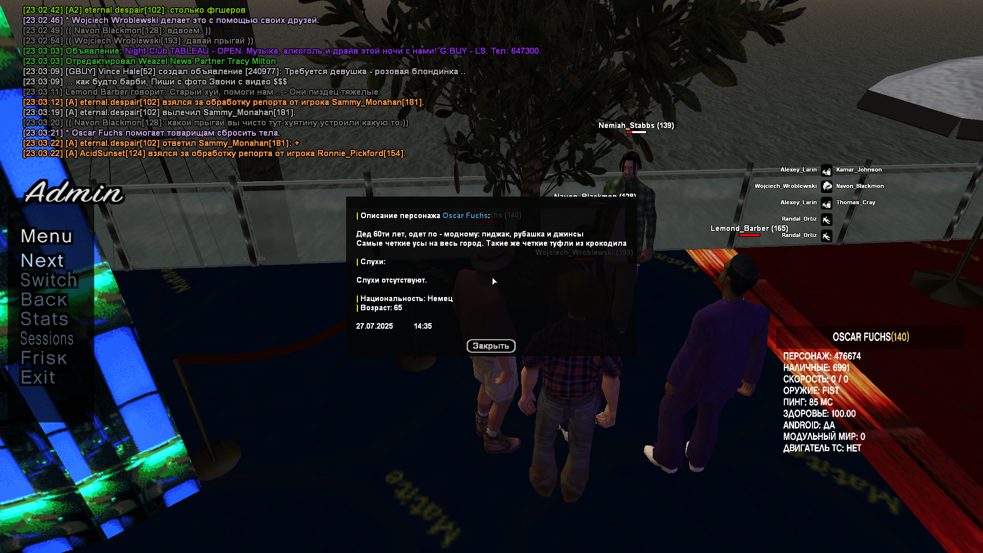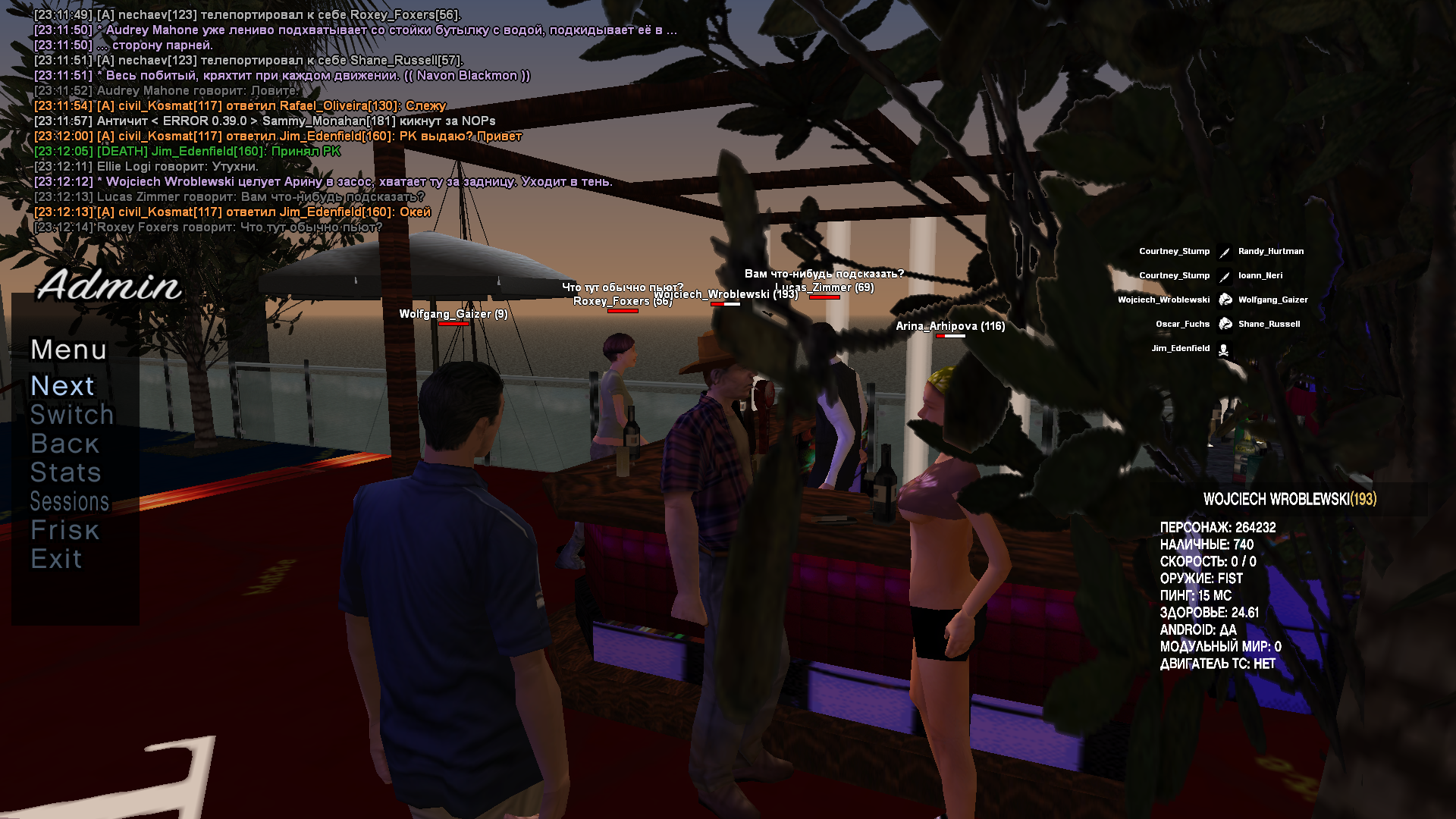 «Мне кажется они немного не живые», «приятного полета, вероятно они умерли», «да похуй» — а вы вообще в курсе о том что на ролевом сервере играете? Такое поведение и реакцию даже наркотическим опьянением нельзя оправдать, не то что алкогольным.
