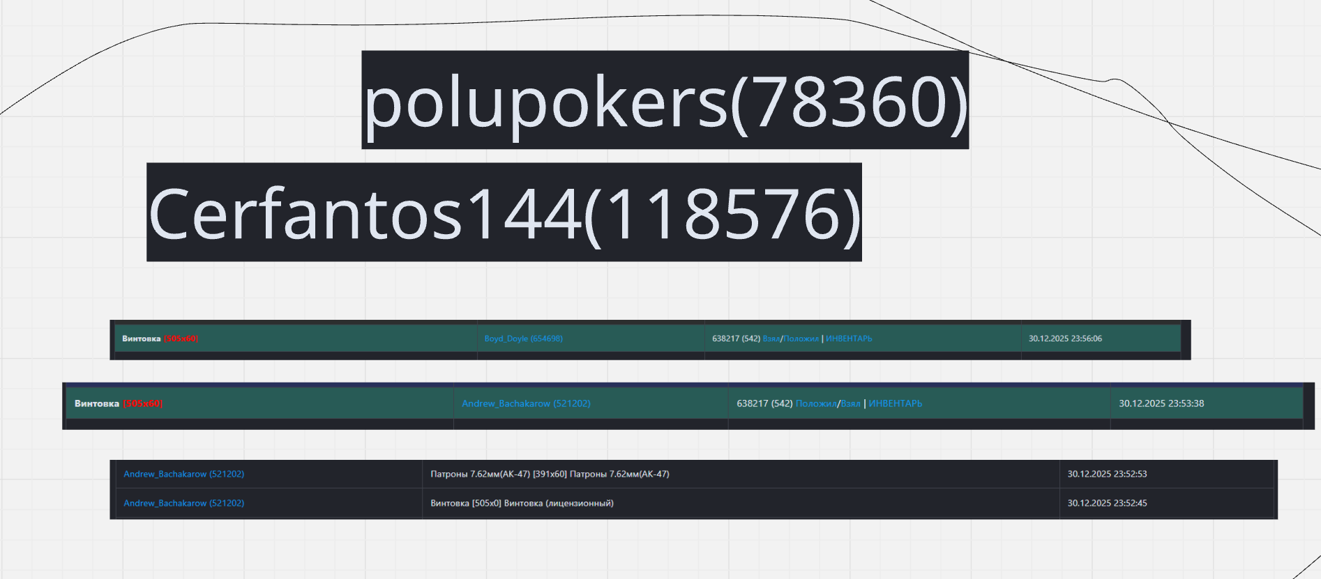 по поводоу патронов, они же не лиц, и мы их обыгрывали, только скринов не осталось, а по поводу лиц винтовки, извиняюсь, не знал что сейчас нельзя так передавать, с 22 года зашел недавно, дико извиняюсь, больше такого не повториться. И если по поводу патронов, можно обьяснить что не так? Тоже впредь не повториться.