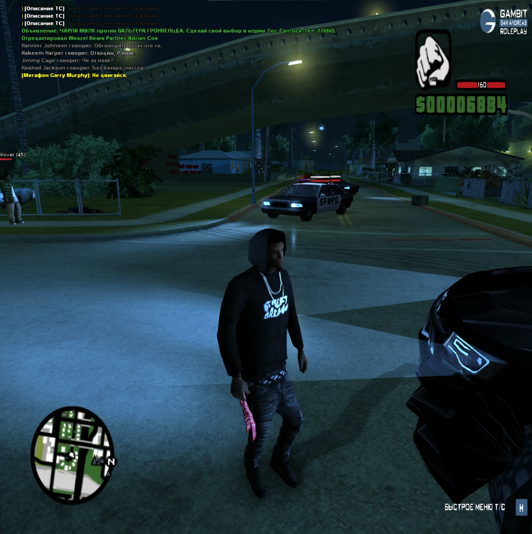 Руководствуясь лояльностью, союзом и логикой уличных группировок, я принял решение вмешаться, что полностью укладывается в криминальное РП. Я посадил мемберов МОБ Пайру в машину, после чего мы поехали искать задержанного.
