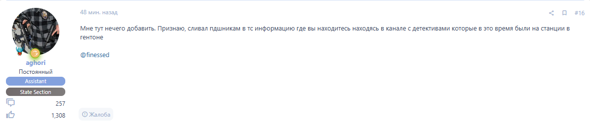 Суть жалобы: признался в злоупотреблении админ,ассист-правами.