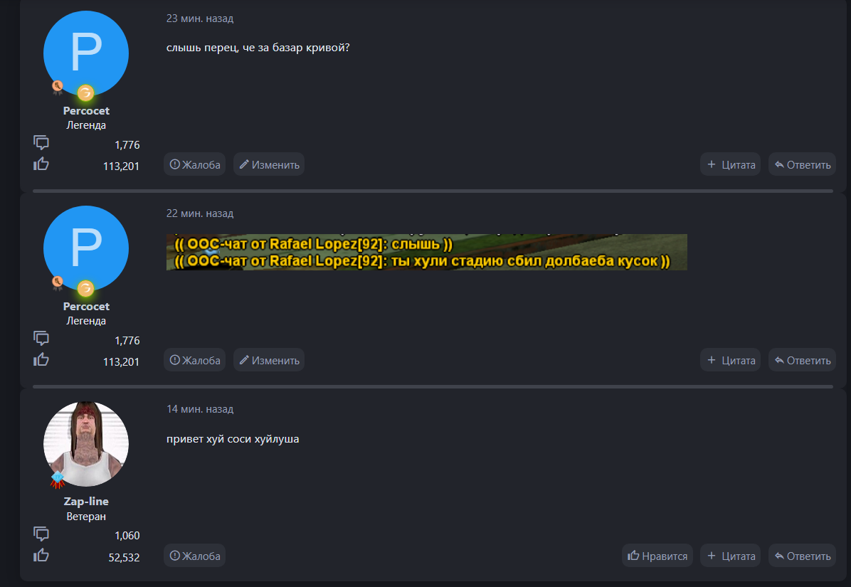 А потом как оказалось это игрок начинающей фракции (https://forum.gambit-rp.com/threads/564904/) которая еще ни разу и в игру то не заходила, но почему то не имея с нами никакого взаимодействия они выслеживали меня и моих игроков. Далее к нам начинают агрессивно стучаться в дом со словами: "Если вы не выйдете, все превратитесь в решето."