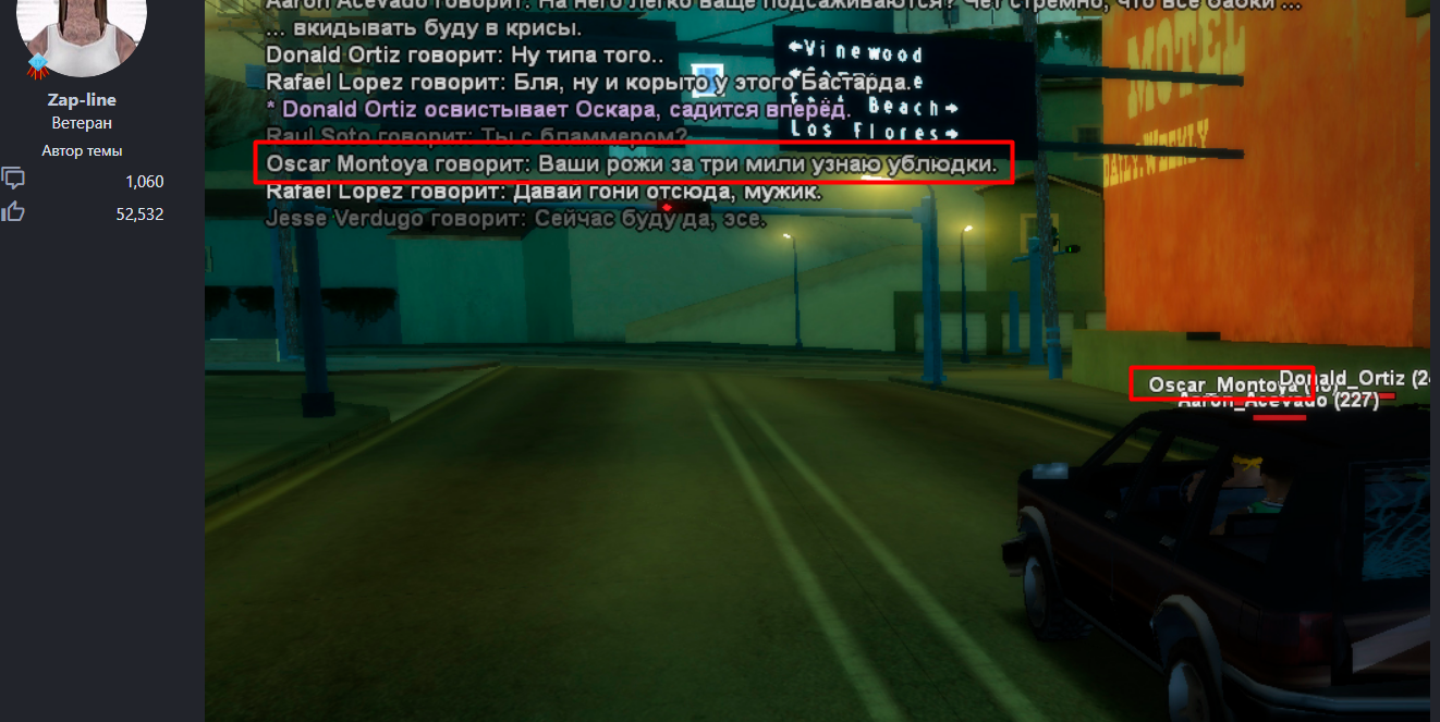 Рассмотрено Opal Street Locos - https://forum.gambit-rp.com/threads/564843/ - Rafael_Loperz, Oscar_Montoya, +администратор DRED2X2