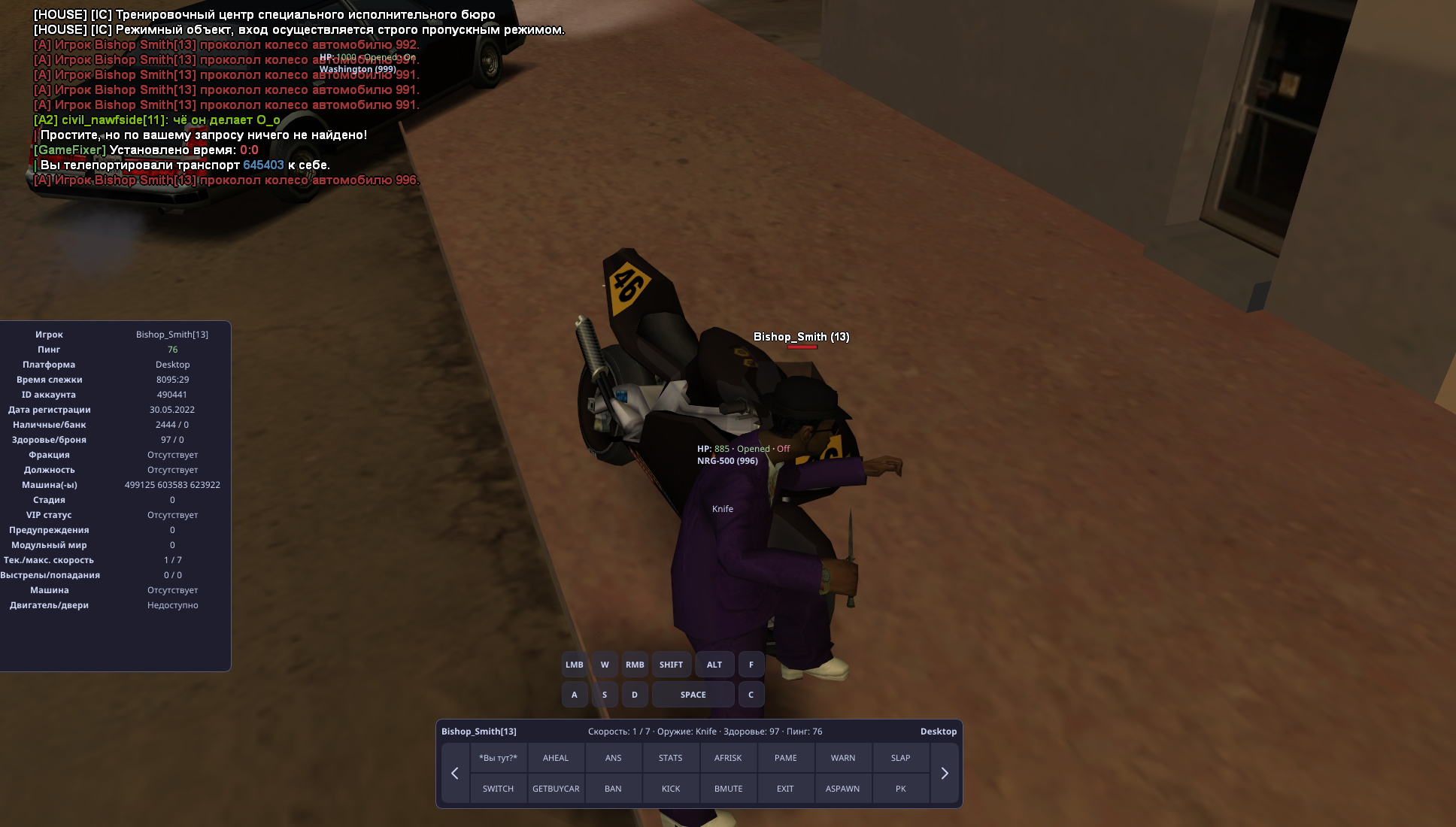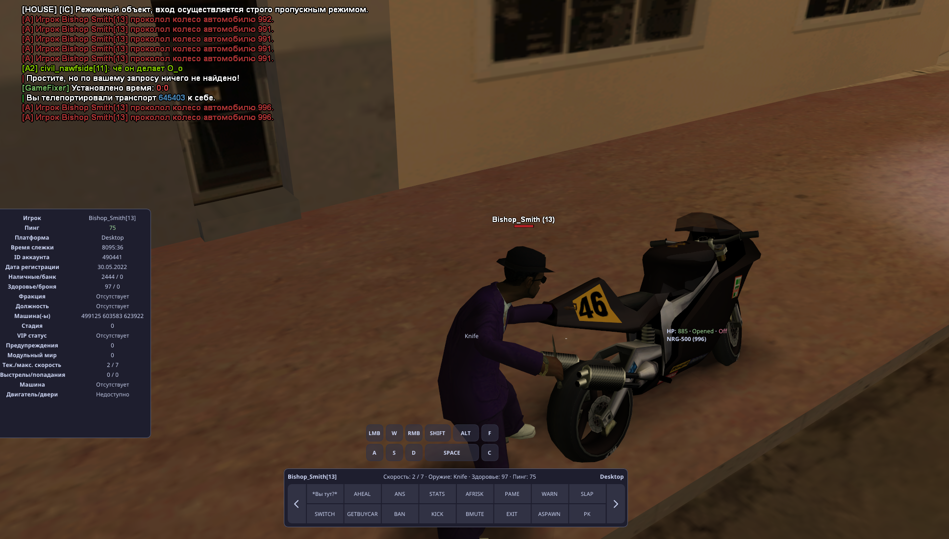 Суть жалобы: Получил бан за неролевое. НЕ понял что конкретно, то что я у байка шины спустил ножом и все?