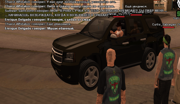 Вы просто приехали и начинаете качать нас, при этом когда нас трое, а вас двое. Где ваши страхи? Вашу машину уже буквально пинают, вы просто сидите и пишите в чат "твой батя" "ты" "твой", не считаешь это откровенным фангеймом? Так же отыгровка "в будущем харкнет на мамку Куртиза" Тебя самого это не смутило? Я просто не понимаю смысл вашей игры, вы приезжаете, фанитесь, получаете бан, потом пишите на форуме. И кто то говорил что у меня личная обида? Сомнительно