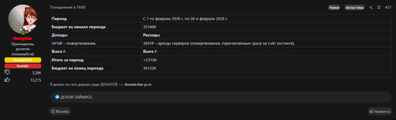 Продолжать можно ещё очень долго, но завершить этап с нововведениями я бы хотел такими словами -- все последние обновления вполне могут устаканиться на проекте, просто их нужно грамотно репрезентовать. Я не столько топлю за системы, ведь проекту они нужны лишь во вторую очередь. В первую очередь проект живёт только благодаря вот этой верной, оставшейся прослойке игроков, которые вполне могут на голом энтузиазме и без всяких систем играть тут и дальше, ровно как и играли до этого. Сохраните хоть нас и всё, я думаю, у проекта будет хорошо, сколь ему ещё осталось существовать.