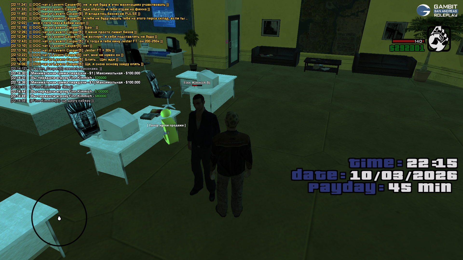 Суть жалобы: выставил склад на продажу, отозвался игрок, дал мне 200к с Финна и сменил перса на Лаверна, хотел склад на него получить. Вернул ему деньги, попрошу проверить игрока на 24пп