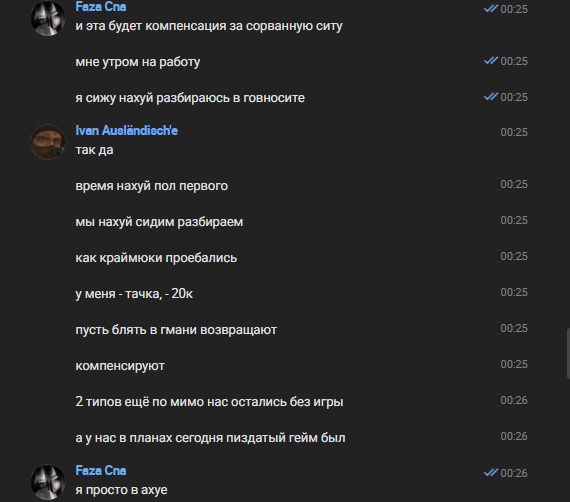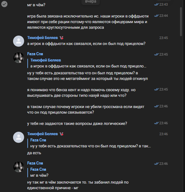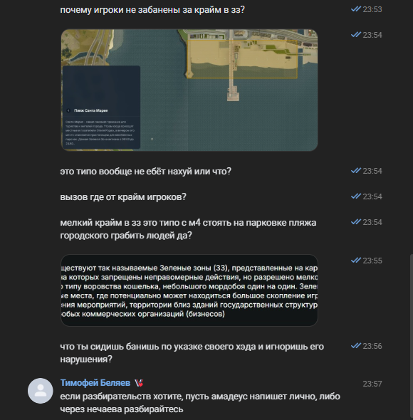 Ахуел я после ответа на мои тейки и предоставление доказательств о невиновности моих игроков - пиши бензе. Писать хэду который участник ситуации? Пахнет знаете чем? Приходом ДХОКа по просьбе своего ХОКа въебать банчики когда проебал ситуацию.