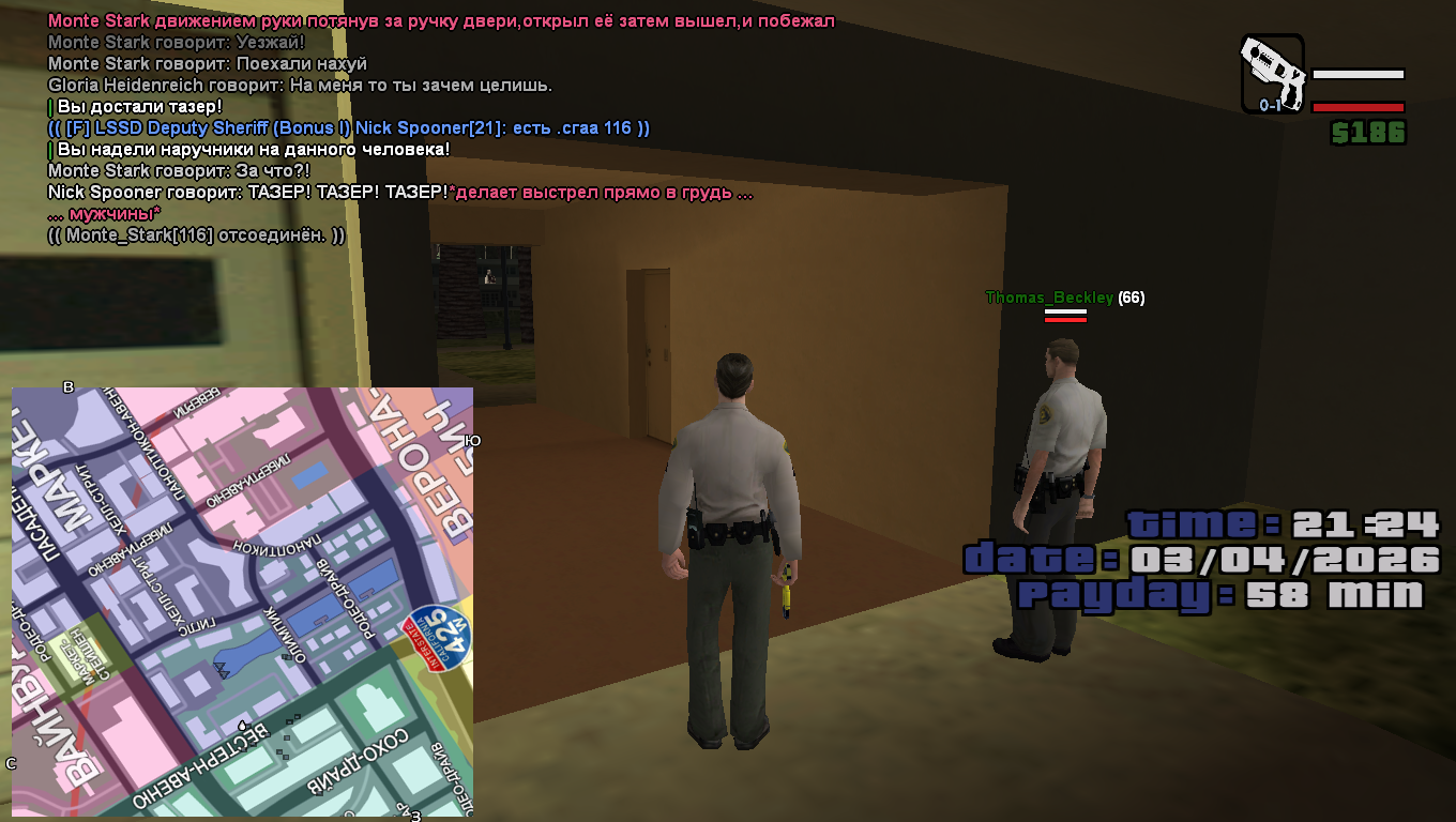 Суть жалобы: Играли с мужиком, поместили его в крузер пока общались с женой другого игрока, тут он откидывает в чат , даже не отыгровку, а просто сообщение, и начинает убегать, после того как я напялил на него наручники он один два нажал и вылетела шутчка, что его античит кикнул. Подождали 7 минут - никто так и не зашел. За выход с ситуации прошу наказать а так же за то, что он в принципе каким-то чудом открыл дверь крузера изнутри.