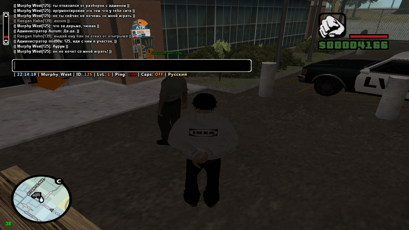 Суть жалобы: Играл с соигроками, с персонажа который предназначен у меня только для ССок, никак не взаимодействуя с другими игроками кроме своих. Подлетают ЛССД и начинают ввести ситу рядом, после чего валят меня пока я проходил мимо, якобы за АПБ по стрельбе, отказываясь разобраться во всей ситуации. Меня забирает детектив который отказался разбираться с админами и тупо через /me кинул пару отыгровок как он меня посадил в машину и забрал на участок. Уже на участке я предлагаю разобраться во всей сите ещё раз, после его отрицательного ответа, я предложил ему отыграть ситу нормально, на что получил отказ. Через некоторое время у меня вылетает из-за проблем с интернетом и хостингом, но не успев зайти, вижу бан от Аурума.